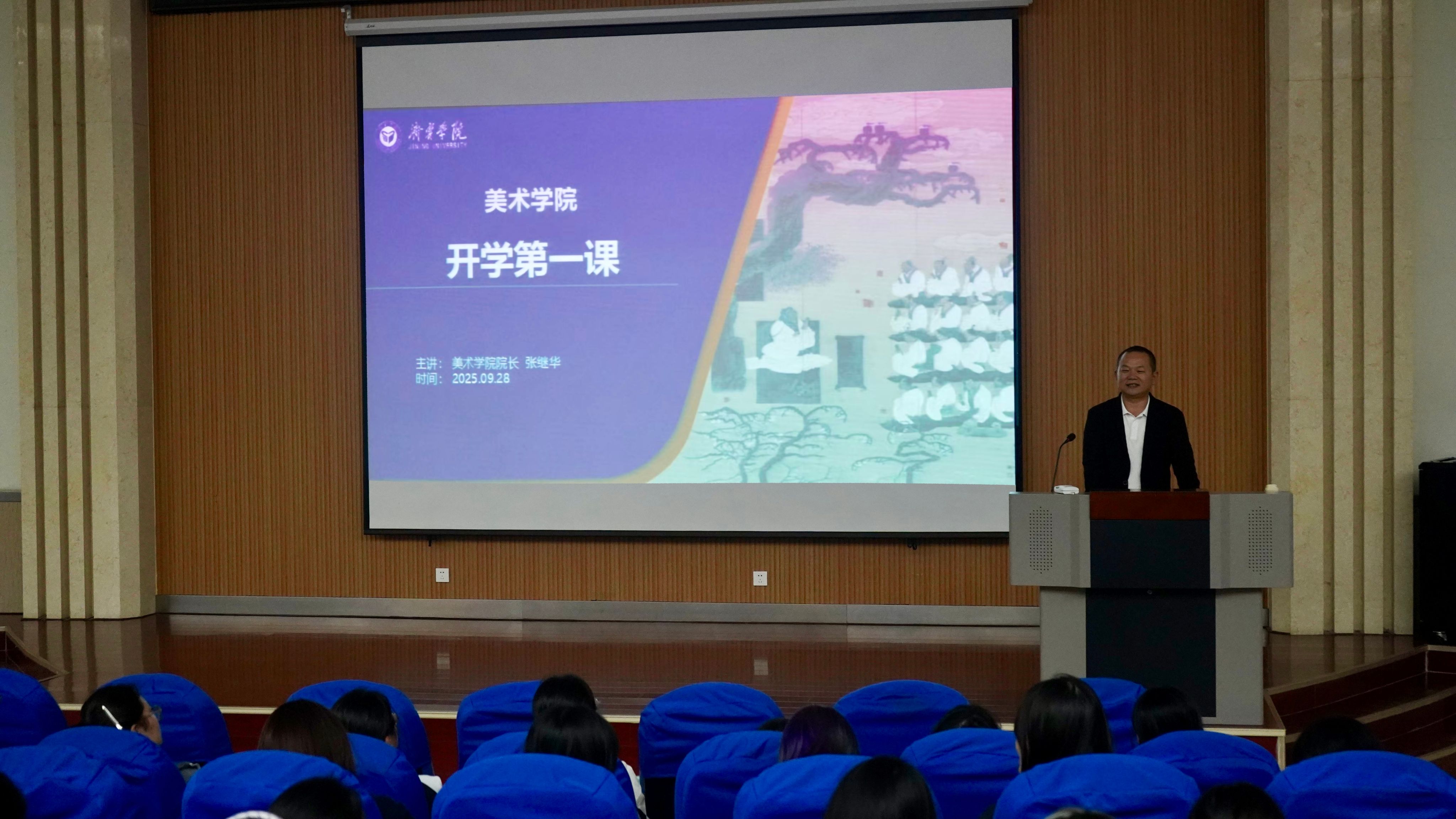 9月28日晚,美术学院在3号楼报告厅开展了一场新生专业规划入学教育讲座,本次讲座由院长张继华讲授,2025级新生辅导员及全体新生参加。