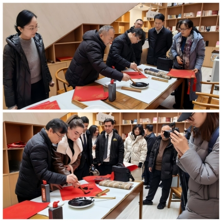 我院教师现场为市民书写春联,吸引了众多市民与驻济高校留学生参与。活动中,教师们指导市民和留学生创作新春作品,让大家在实践中感受传统艺术的魅力,进一步丰富了市民节日文化生活。