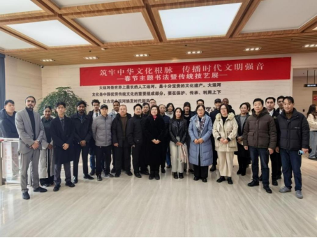1月24日,由中共济宁市委统战部主办,济宁市党外知识分子联谊会、济宁学院党外知识分子联谊会等多家单位承办的“筑牢中华文化根脉,传播时代文明强音”春节主题书法暨传统技艺展在济宁市河道总督府举办。美术学院党委书记杨晓青带领吕进成教授等专业教师参加活动。