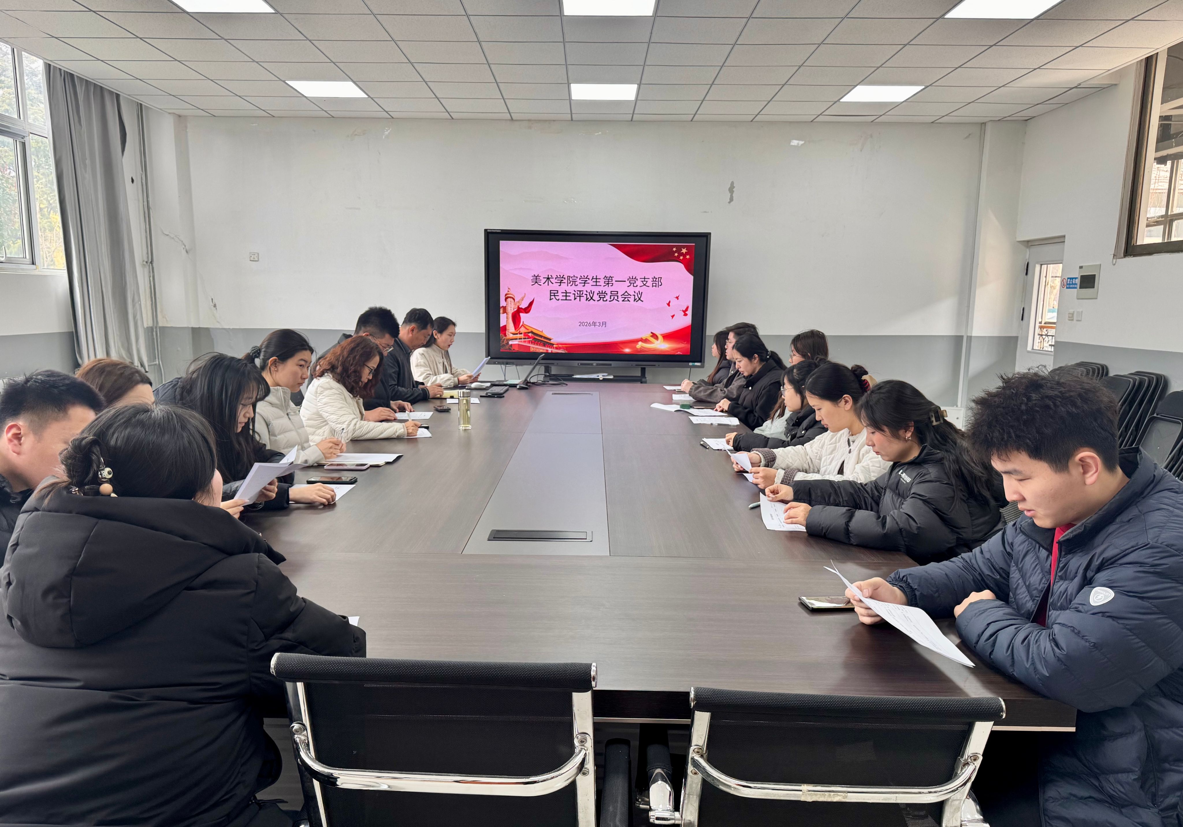 为严肃党内政治生活,强化党员党性修养,提升党支部凝聚力、战斗力,3月19日,美术学院学生第一、第二党支部组织全体党员分别在校本部高新校区会议室开展2025年度组织生活会暨民主评议党员大会。美术学院党委副书记冯秉政、组织员高爽列席指导,会议由党支部书记王姝彤主持。
