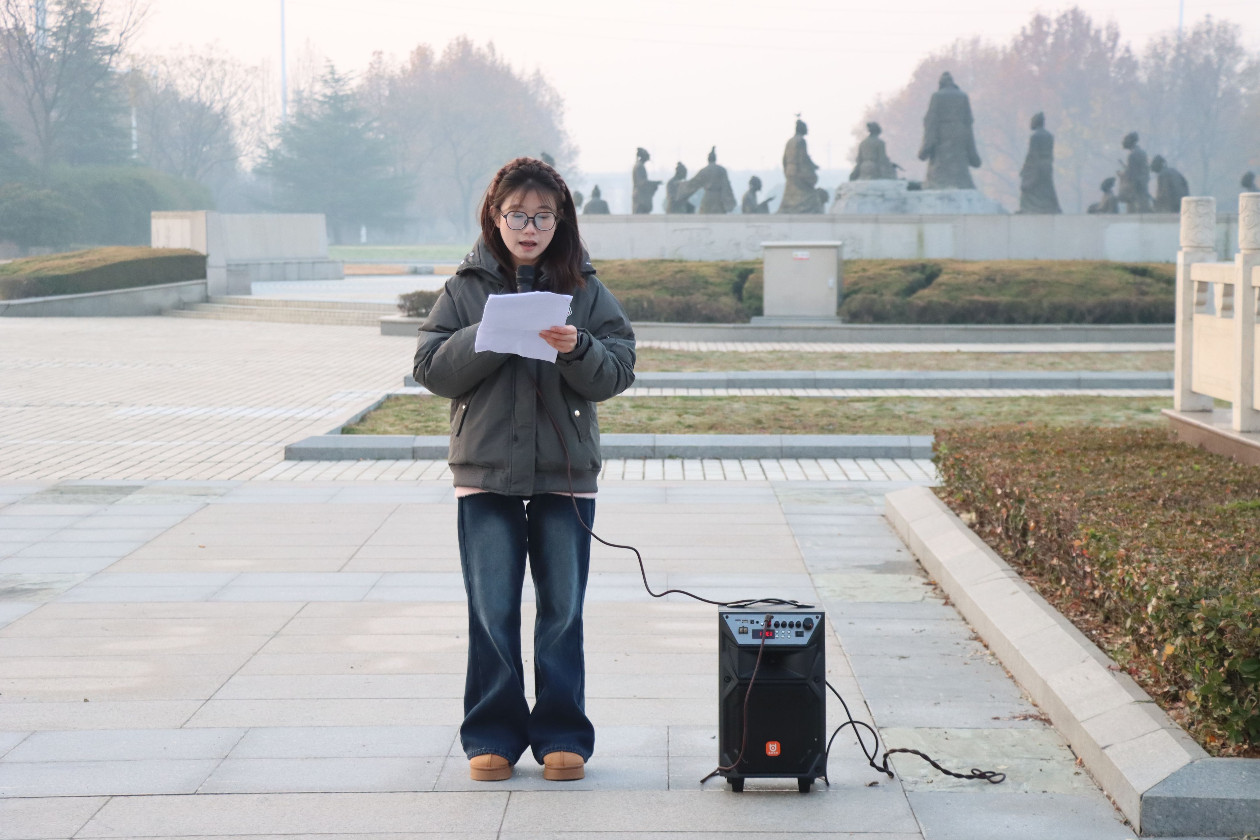 升旗仪式后,美术学院学生林赫、闫姝辰作为代表发言。他们结合自身感悟与时代要求,深情寄语同学:当代青年生逢盛世,更当不负盛世。既要以担当为笔,为国家富强、民族振兴的伟大事业挥洒青春汗水,彰显为国为民的赤子情怀。更要以无畏为翼,直面成长路上的风险挑战,在投身国家发展的壮阔历程中锚定人生理想、实现价值升华。