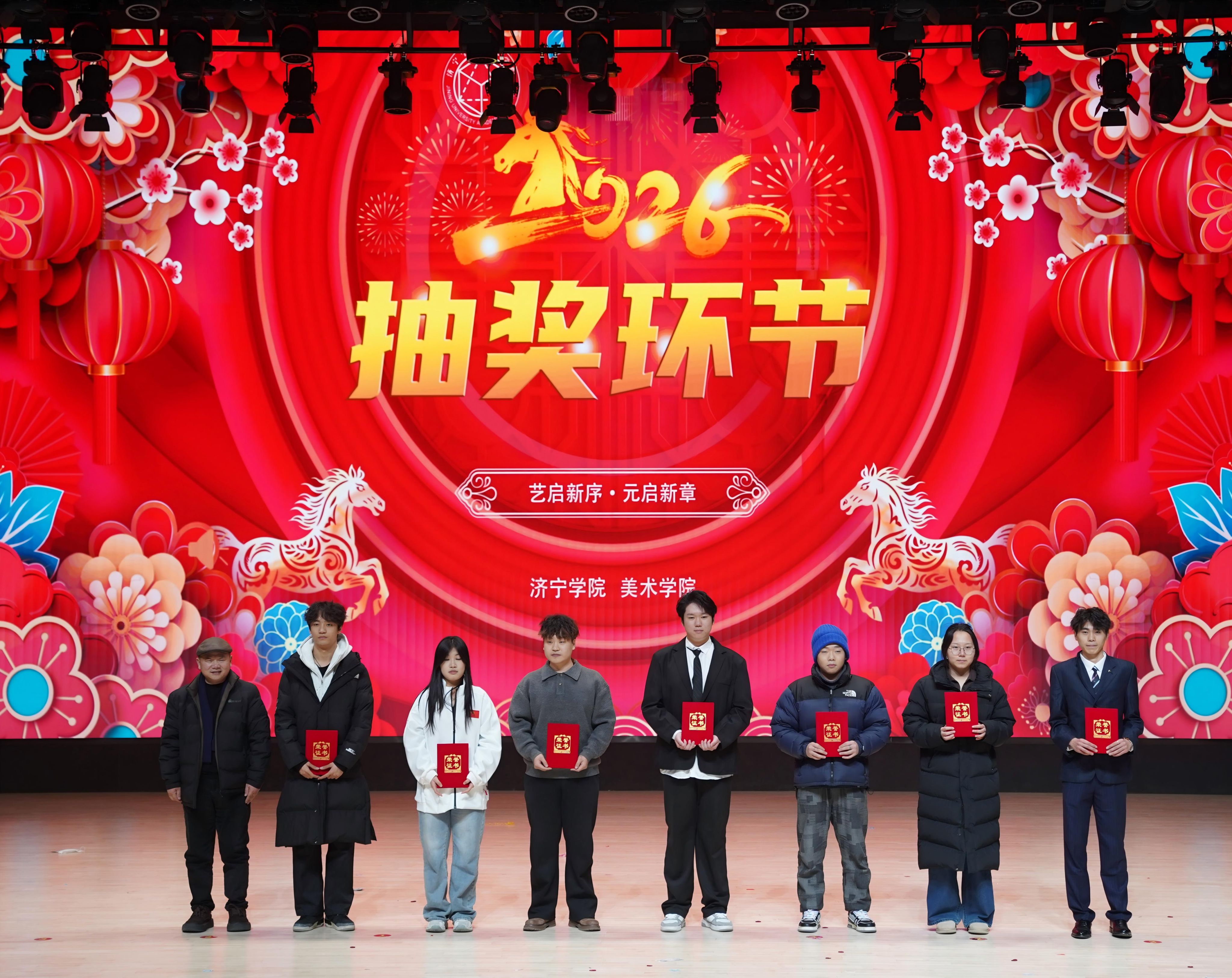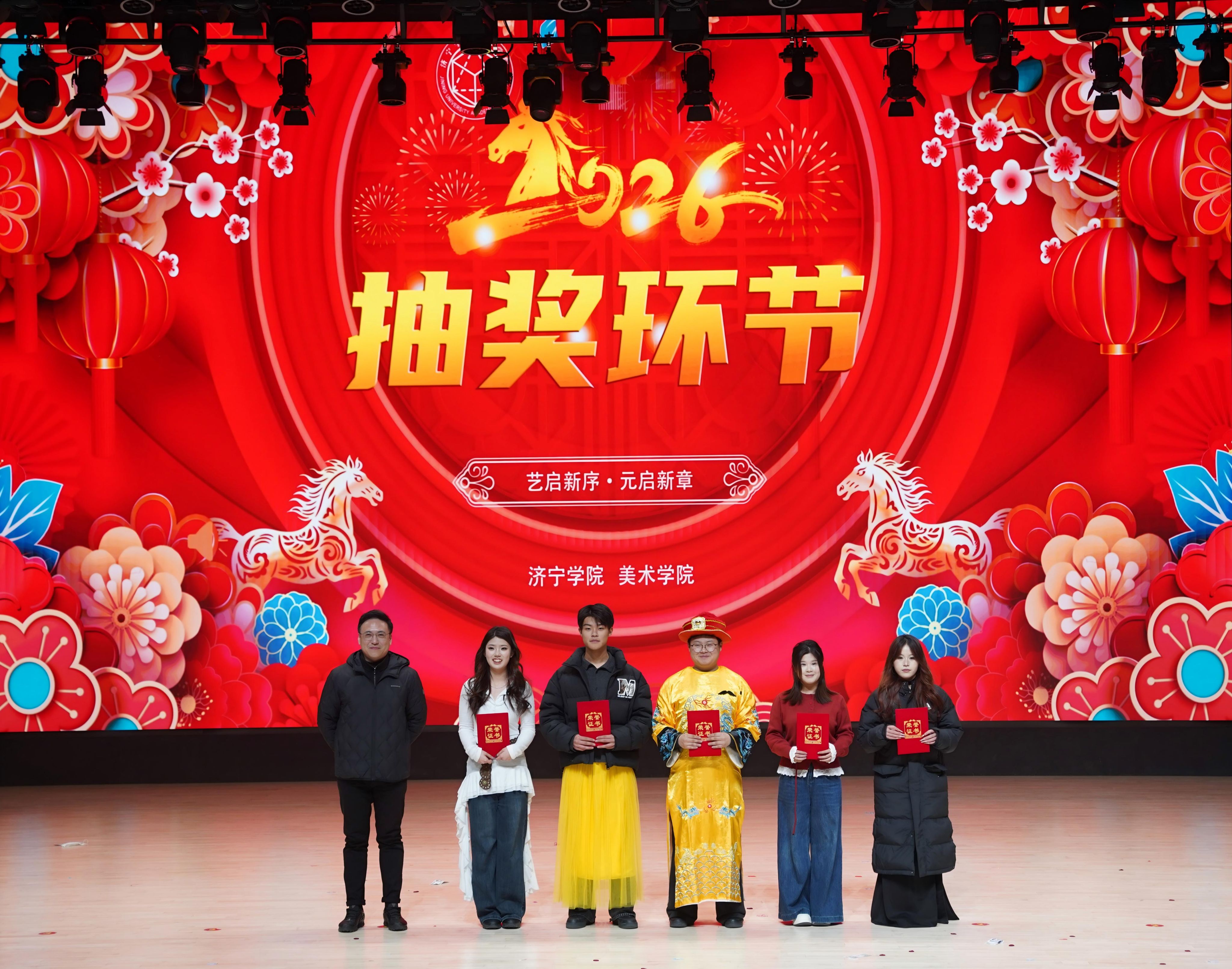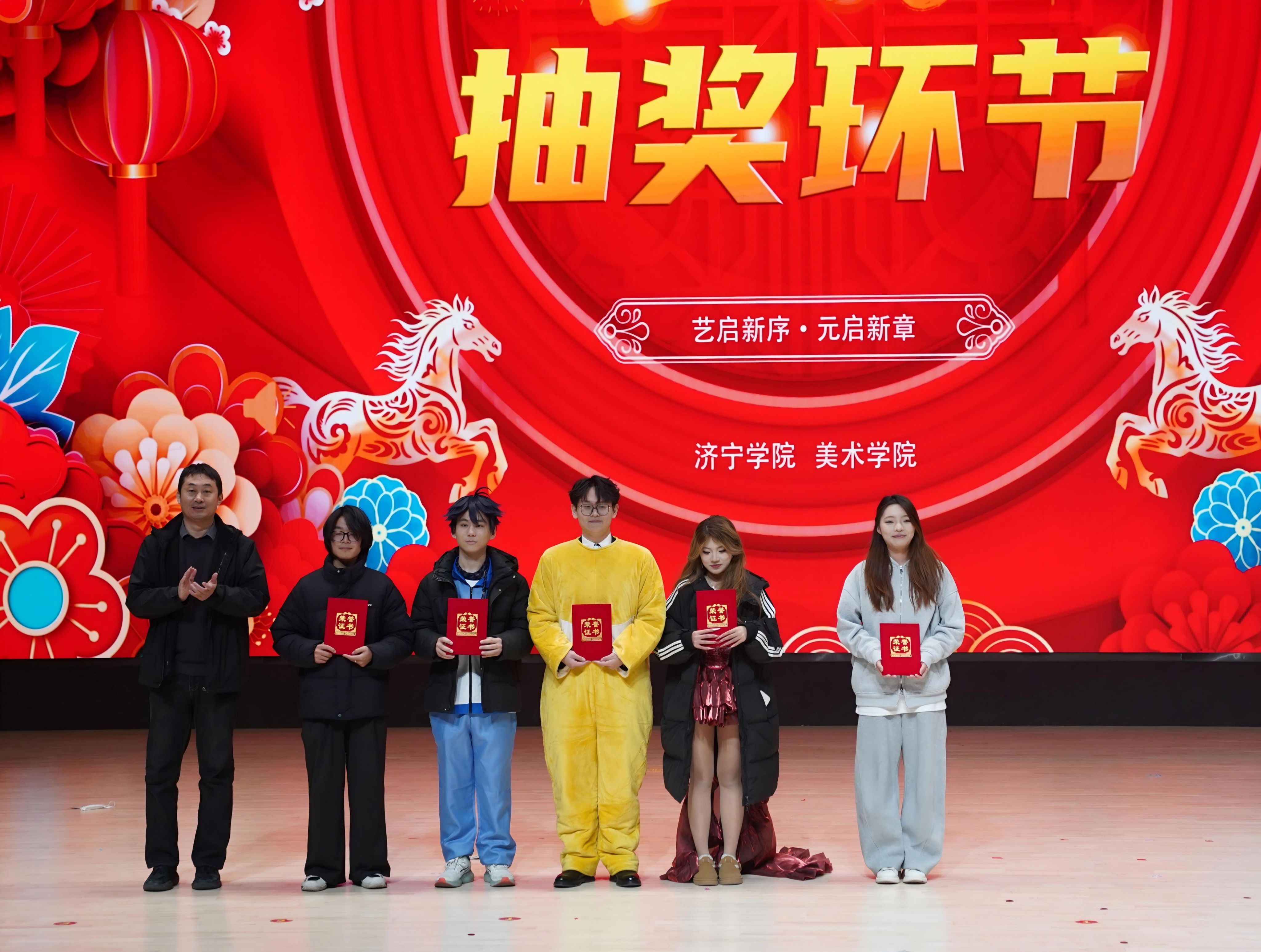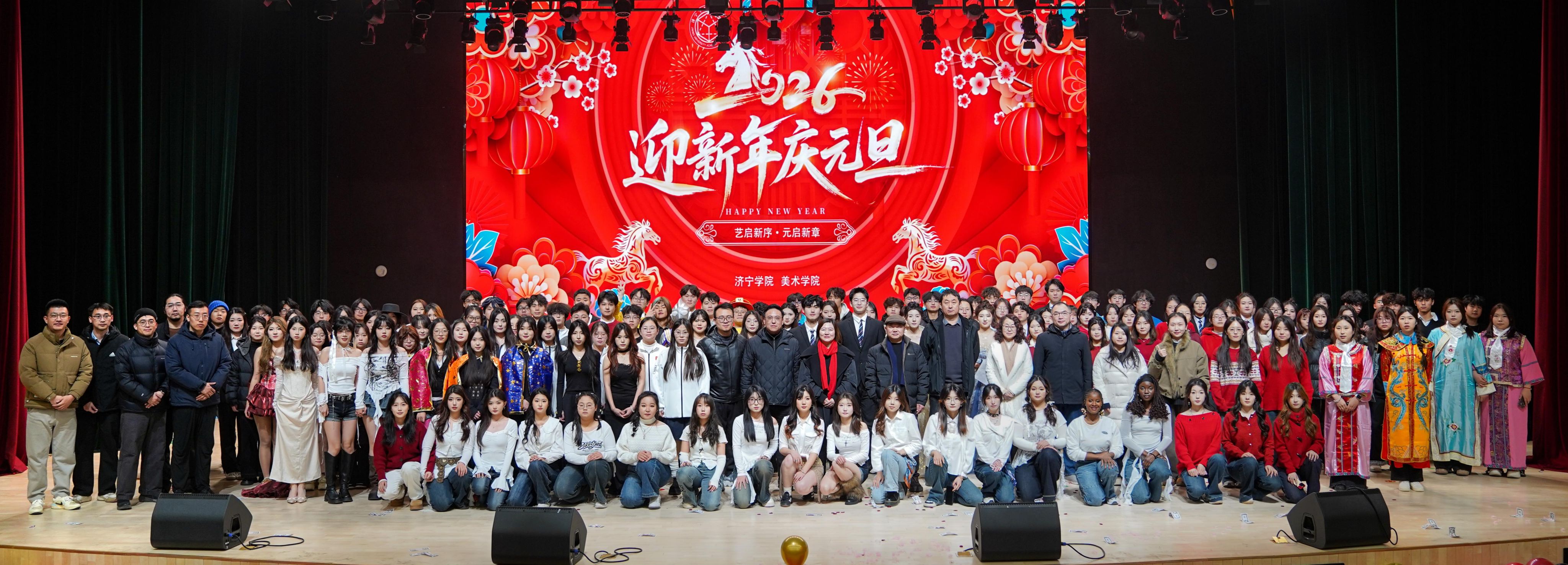 1月12日,美术学院在学校艺体中心音乐厅成功举办“艺启新序·元启新章”联欢会,济宁学院党委委员、宣传部部长刘克非,美术学院党委书记杨晓青、院长张继华、党委副书记冯秉政、副院长刘乾出席,400余名师生齐聚一堂观看演出。