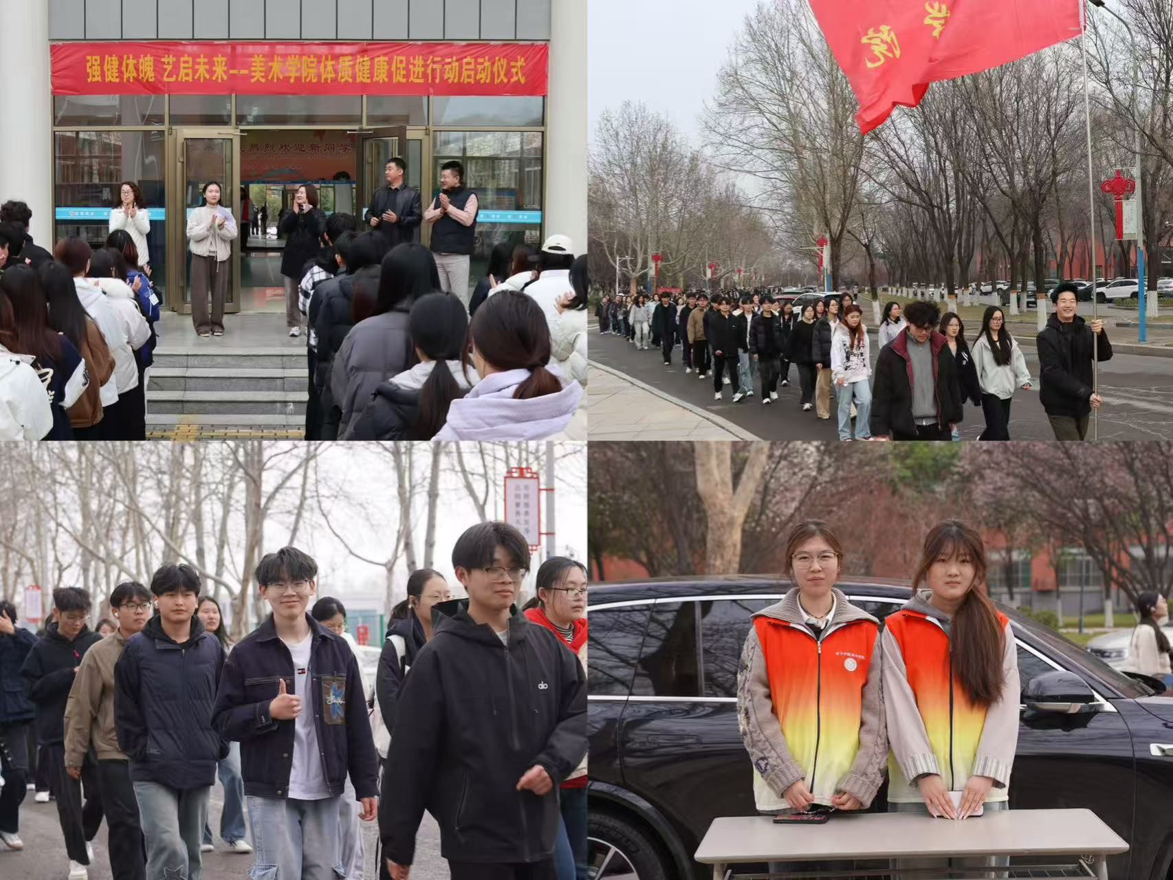 3月19日下午,美术学院2026年“健康美院·艺起行动”学生健身行动计划启动仪式暨“春日启程”校园健步走活动在学院东广场举行。学院党委书记杨晓青、党委副书记冯秉政、全体辅导员及300余名学生共同参加活动。