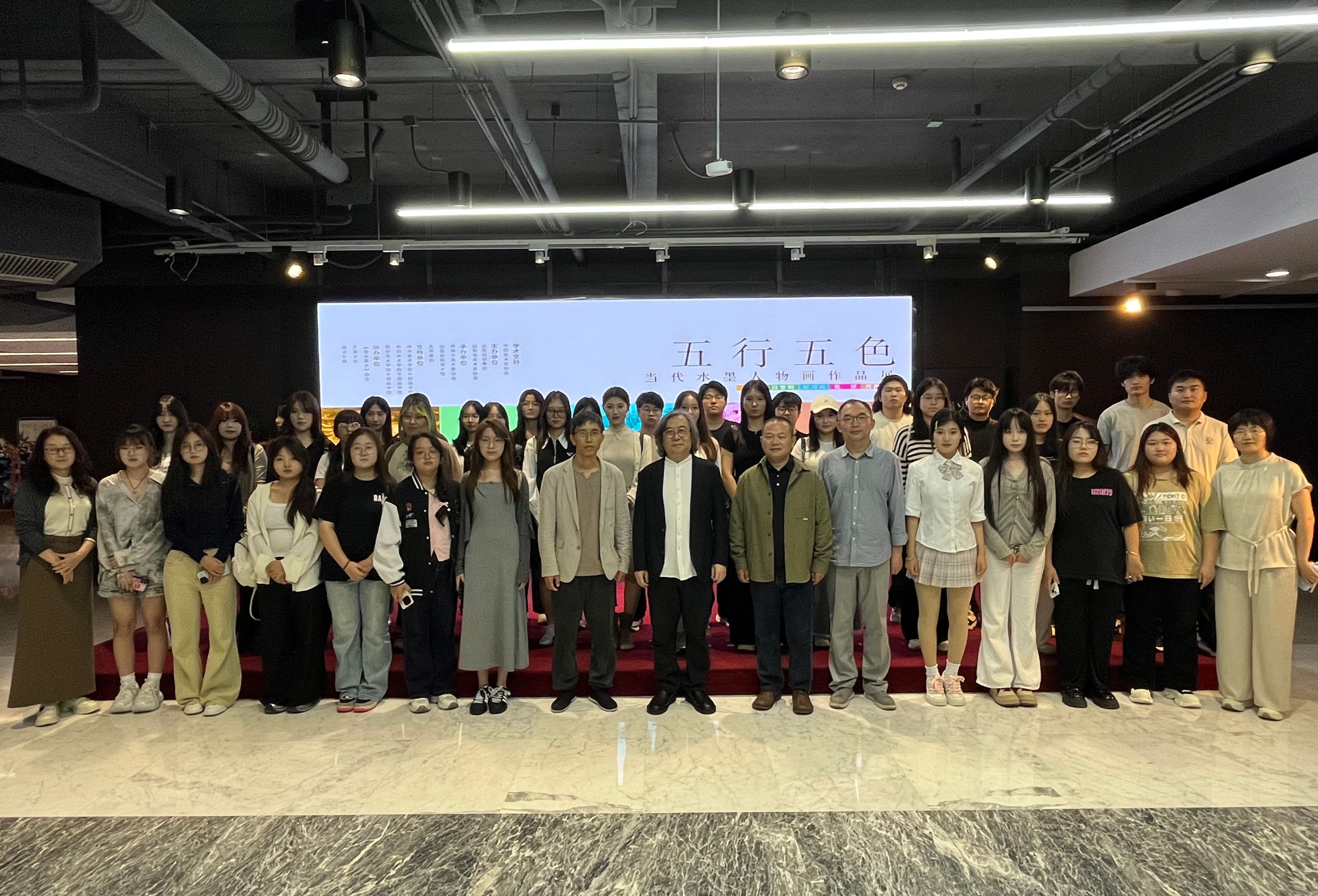 随后,师生一行前往山东出版美术馆参观“五行五色——当代水墨人物画作品展”。展览集中展示了美术学院名誉院长张望及唐勇力、田黎明、尉司雨、刘西洁五位当代水墨艺术家在人物画领域的创新成果,作品既延续了中国传统水墨画的笔墨韵味,又融入了现代审美意识与多元文化元素,在人物形象塑造、色彩运用、构图形式等方面呈现出丰富的艺术面貌。交流中,张望鼓励学生们从传统笔墨精神中汲取养分,同时关注当代艺术发展趋势,尝试将多元艺术语言融入自身创作,提升作品的文化内涵与时代性。