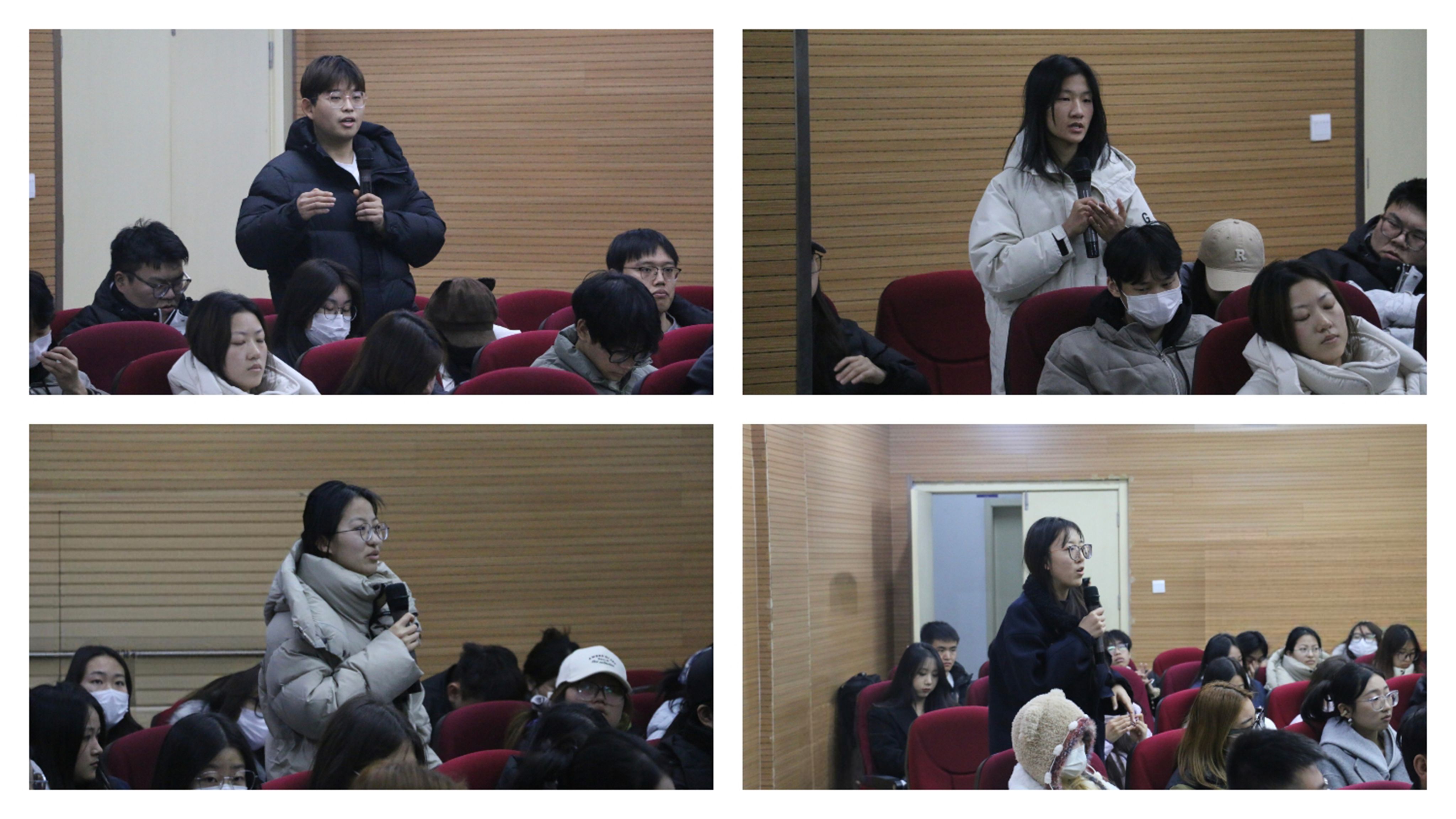 互动交流环节,同学们踊跃发言,围绕行业选择、实习实践、能力储备、创业孵化等关切问题与王老师、徐老师进行了热烈而深入的探讨。两位老师耐心解答,并结合实际给予个性化建议,现场气氛活跃,启发性强。